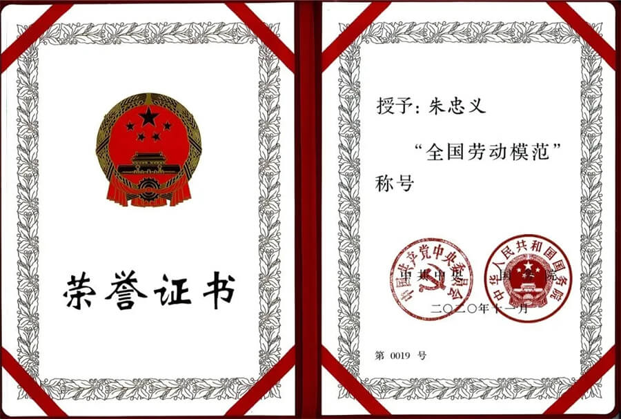 2020年10月15日,中共中央办公厅、国务院办公厅公示了2020年全国劳动模范拟表彰人选,朱忠义的名字位列其中。这一天,他收到了很多亲人、朋友的祝贺。在一一回复这些信息后,朱忠义很快回到工作状态,与团队就一个工程中的技术难题展开探讨,一直持续到了深夜。