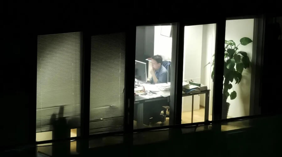 深夜工作的朱忠义