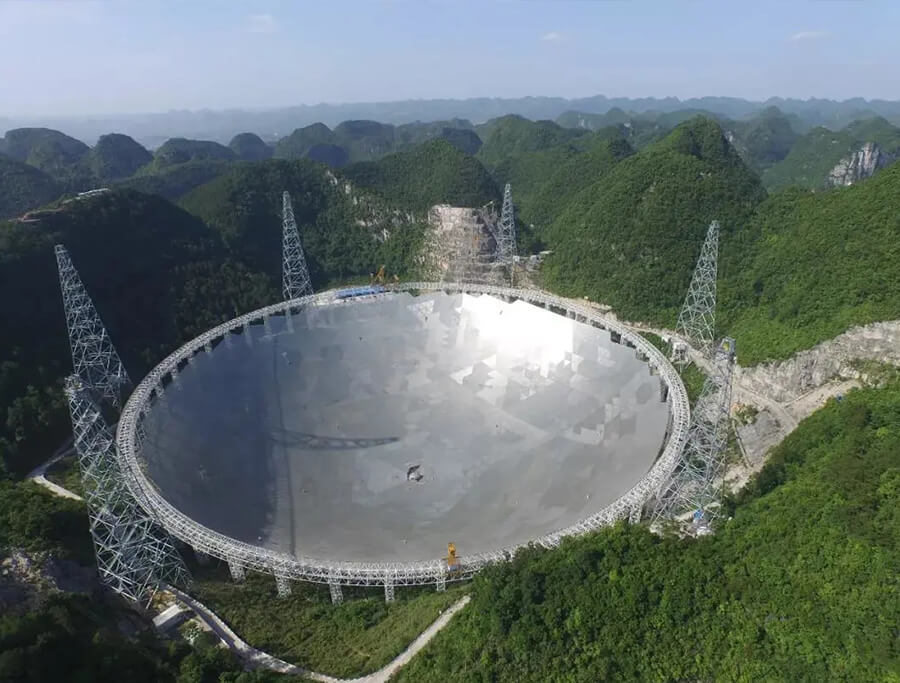 FAST由中国科学院国家天文台主导建设,多家高校、科研单位和企业开展了卓有成效的研究和设计工作。项目位于地形地貌复杂的贵州喀斯特洼地,精度要求和几何尺度都远超常规建筑结构,而且为满足观测需求,还要求结构具有主动变位功能,这些都给结构设计带来了前所未有的挑战。