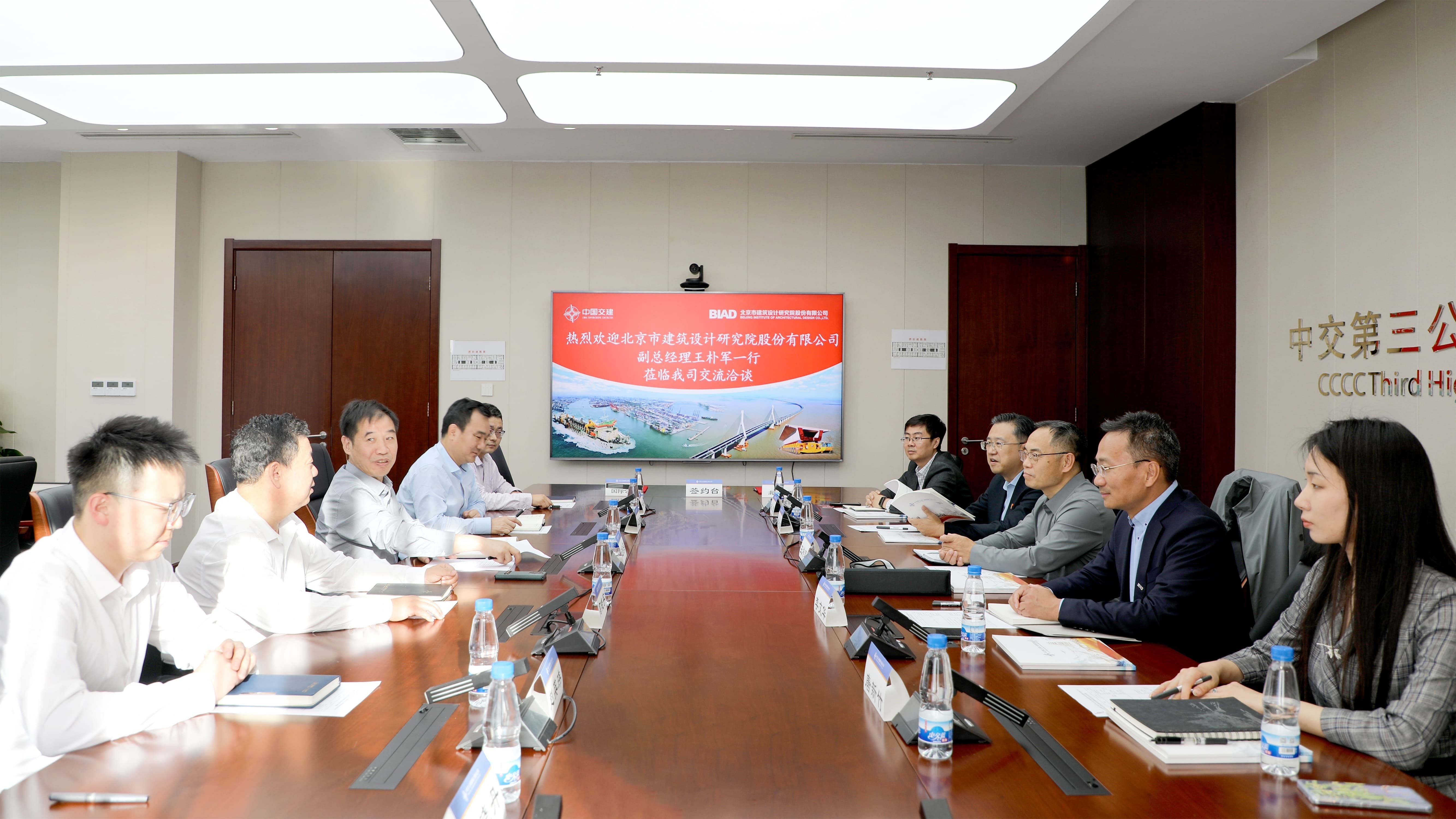 双方就行业现状、海外市场、各方优势、合作计划等方面深入探讨交流。中交三公局国际工程分公司副总经理、总工程师高晓宇主持会议。