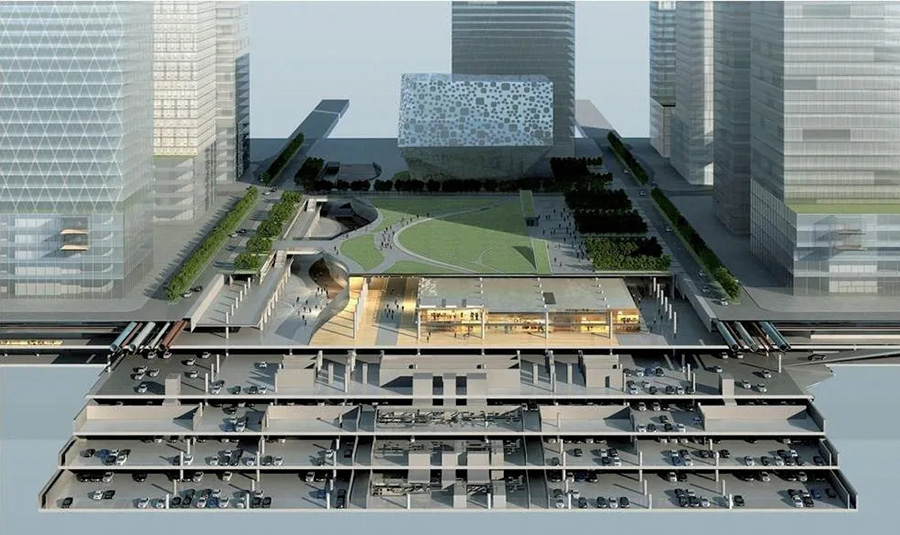 CBD核心区基础设施工程位于中央公共绿地以及道路下方,是集交通、市政、景观以及综合防灾功能为一体的综合设施,项目完工后将为区域提供宜人的地上空间、便捷的交通网络和安全高效的市政基础设施。本项目是特大型地下综合工程,在设计中着重对道路空间的综合开发与利用进行了探讨,道路结构的设计打破了以往建筑和市政专业相互分裂的局面,全面整合了城市空间,具有很强的示范意义。