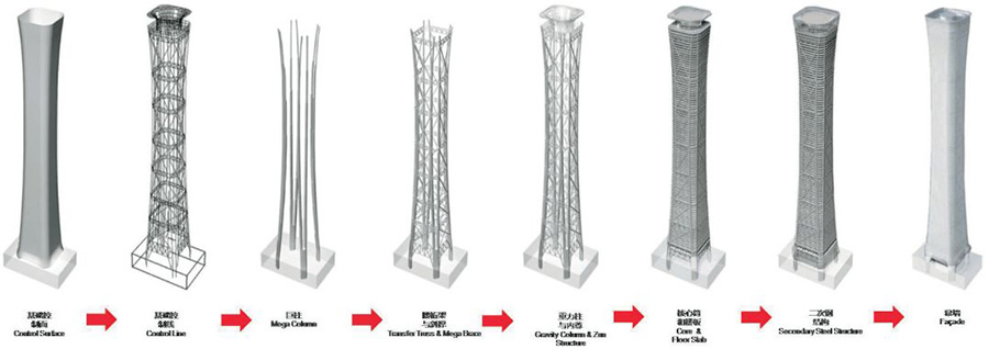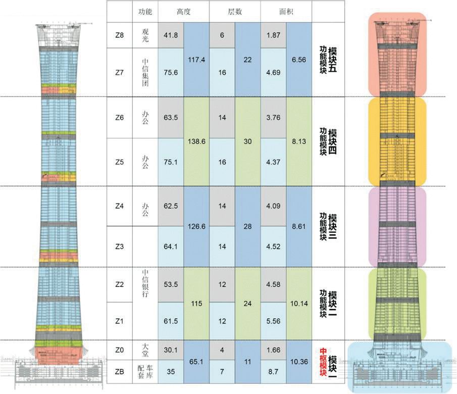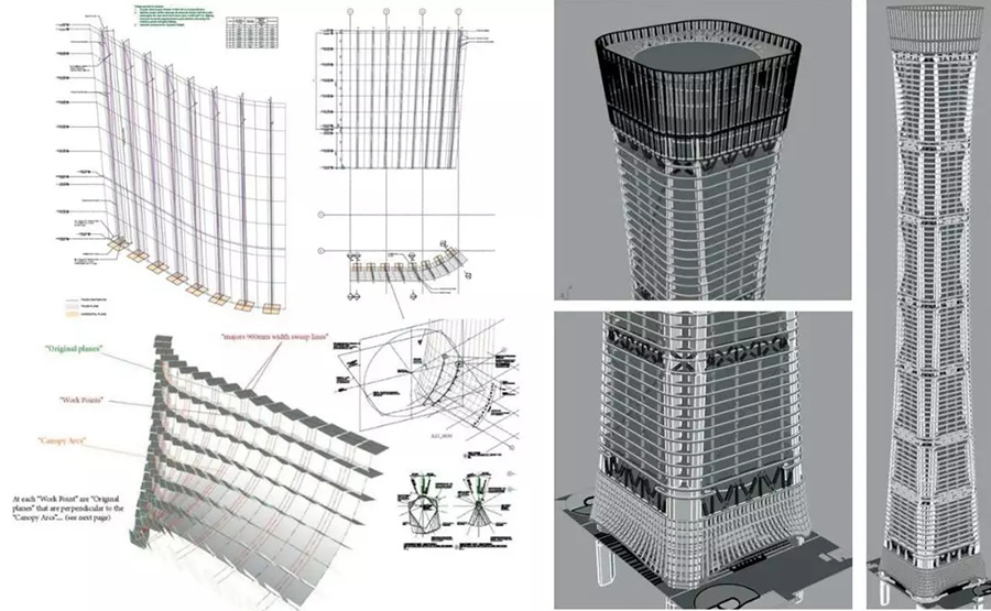 中信大厦项目总建筑面积为43.7万平方米,是北京新时代的标志。建筑造型灵感来源于中国传统礼器"尊",具有收腰的造型构成了它的独特性。针对Z15的特点利用数字工具建立多专业、多部门协同工作的建筑信息平台,高效、准确、科学地解决实际工程中的技术难题,达到建筑整体性能的协调统一。