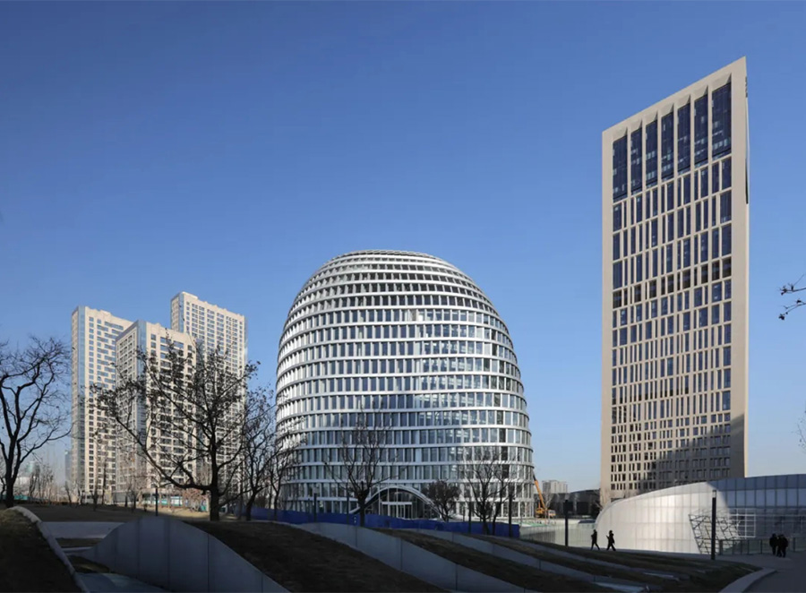 城奥大厦位于奥体南区的中央公园内的东北角,占地面积1.2273公顷,地上总建筑面积约7万平方米,建筑高度95米。项目是北京建院全专业配合完成的原创设计作品,是集办公、商业及配套服务为一体的地标性建筑。建筑主体形象呈柔和的流线造型,层层如涟漪般展开的建筑界面,宛如花样滑冰的运动轨迹。通过数字化技术提升了建筑的整体品质,设计体现绿色建筑理念,让建筑的自身能源利用与能源消耗总体平衡,实现中国绿色建筑三星认证标准。