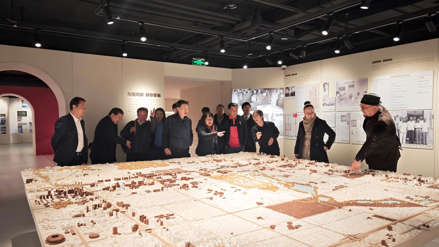 交流伊始,与会领导嘉宾共同参观了集历史传承、创新实践与未来展望于一体的北京建院院史馆。通过系统讲解与实物展示,深入了解北京建院的发展沿革、行业积淀,以及在建筑规划设计、城市更新改造、建筑科技研发等领域的标杆项目与卓越成就,为后续深度合作奠定了坚实的认知基础。