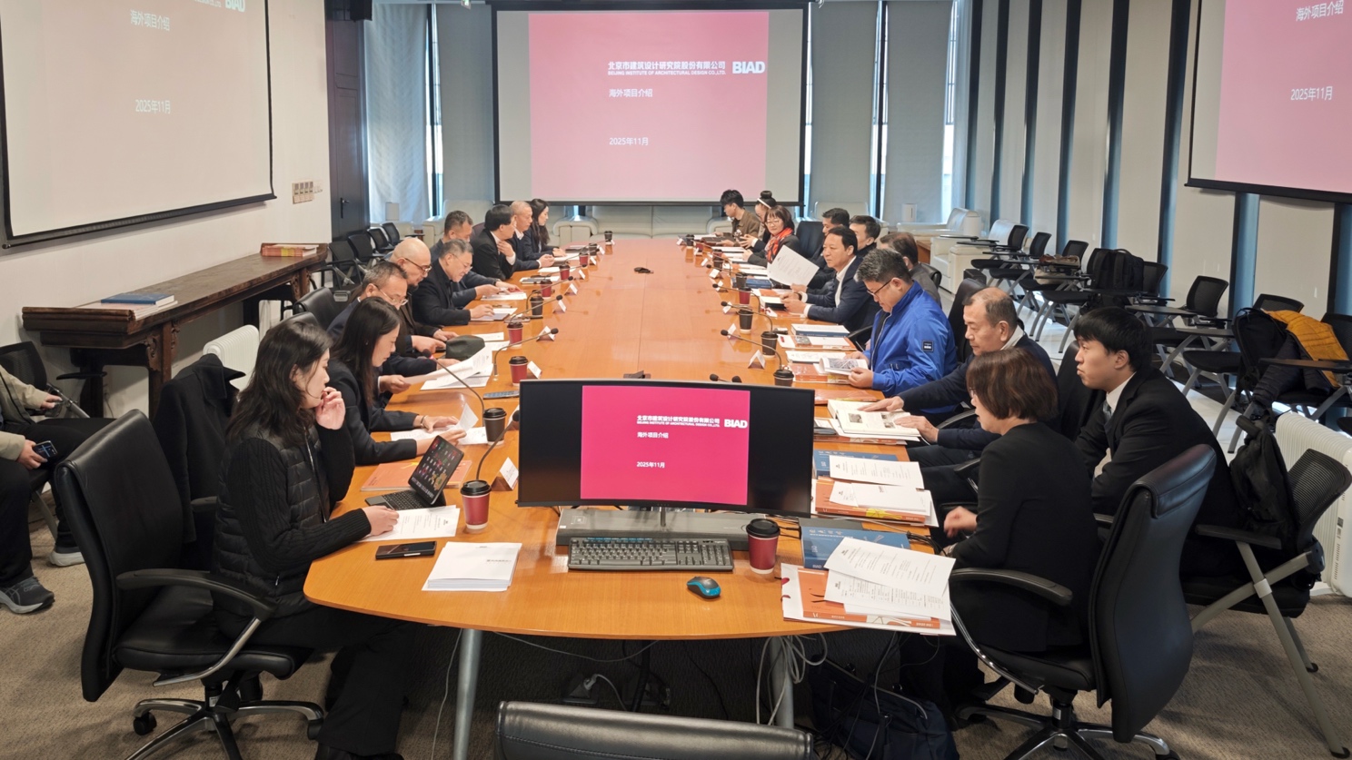 建筑与环艺设计院副院长李文华详细介绍了北京建院海外业务布局规划、标杆项目实践成果及跨文化工程管理的成熟经验,为国际项目协同提供了实操参考;总建筑师王晓群以机场建筑设计为核心议题,深度解析大兴国际机场等重大标志性项目的设计创新理念与技术难题解决方案,展现了我院在大型交通建筑领域的核心竞争力;结构总工程师束伟农聚焦超高层建筑、大跨度空间结构等复杂工程领域,系统阐述了北京建院在前沿结构技术研发与工程落地应用方面的核心优势与技术积累。