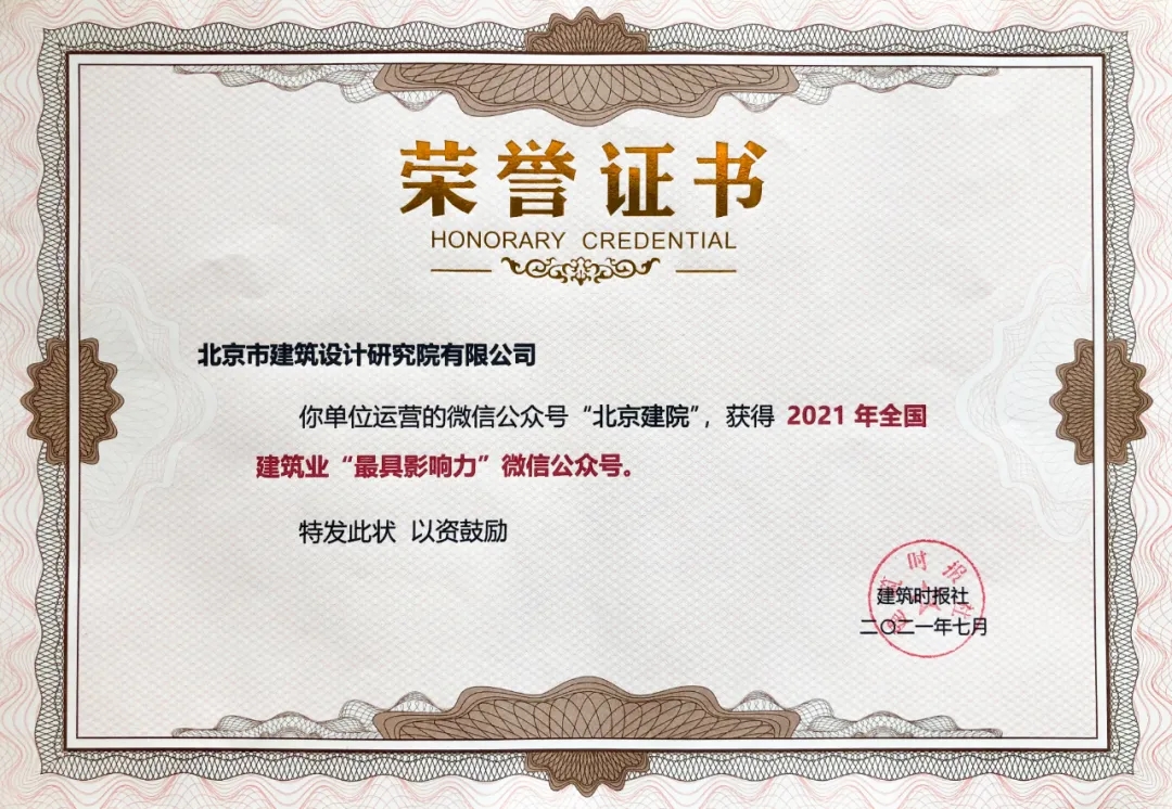 北京建院微信公众号自创办以来,始终坚持以专业的态度、前沿的视角和优质的内容为核心,聚焦建筑行业热点,传播建筑文化,营造良好品牌形象,深受行业内人士的厚爱。在卓越进取、铸就“国际一流的建筑设计科创企业”的征程上,北京建院微信公众号定位新媒体、新思想、新传播,用心凝聚,打造优质内容,共同探索建筑与未来城市建设。