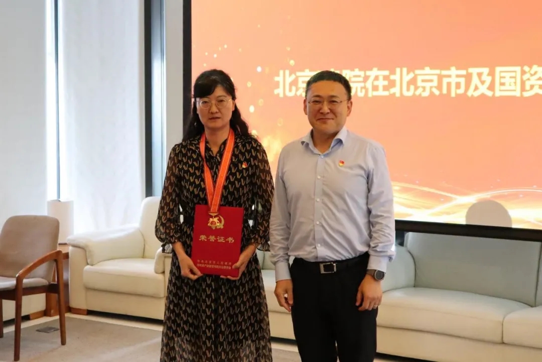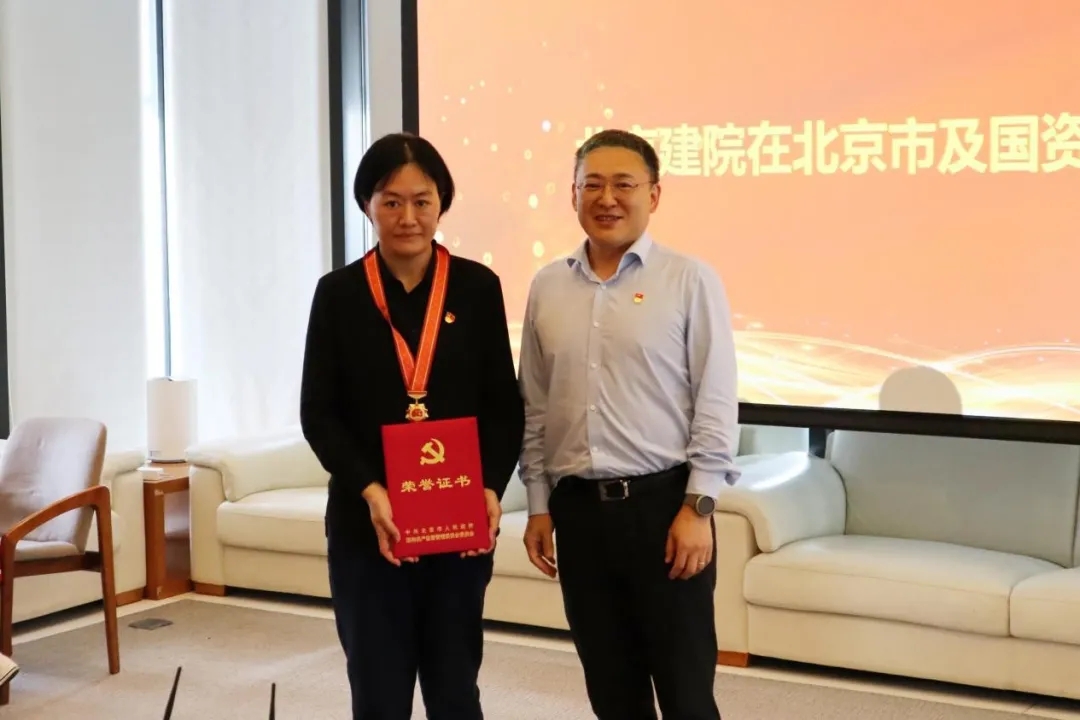 北京建院党委书记、董事长徐全胜和公司党委副书记、总经理张宇为获得荣誉的老党员代表颁发奖章,并向老党员为祖国建设和建院发展作出的贡献致以崇高敬意!